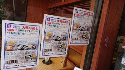 なお、丁度大売り出しが行われており、プレゼントとして、嘉祥菓子のセットをいただきました。そのうち、洋風時雨は、ココアと餡子の組み合わせが新鮮で、思わずうなりました。
