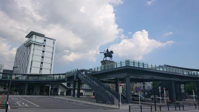 東岡崎駅近くに、近年設置されたご当地出身の武将、徳川家康の像です。かなり高い位置に設置されており、近づきすぎると観づらい位です。しかし、その分、視界さえ確保できれば、いろいろな場所から観ることができます。今回は、見上げるような形で拝見しました。