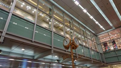 3月中旬に訪問しました。訪問したのが週末の夕方でしたので、周囲は多くの人出賑わっていました。そんな中でも、こちらの時計は、周囲に埋没することなく、目立っていました。金色というのは、それ程用いられない色だけに、パブリックなスペースで目立立せたい物に使用すると効果的だな、と思いました。