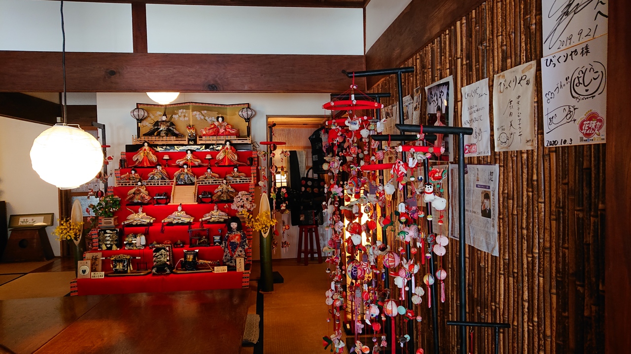 足助観光協会が入居している施設です。係員さんが常駐しています。そして、香嵐渓の観光に関するパンフレットや、豊田市内の催しや観光に関するパンフレットが入手できます。なお、訪問時はひな人形の展示もされていました。