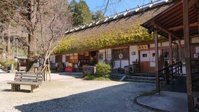 見学には入場料金が必要ですが、有料エリア手前の小さな広場や、お土産物屋さん及びカフェの利用には入場料金は不要です。入口の建物が、かやぶき屋根で出来ており、昔の山村における農家の家屋を彷彿とさせる造りとなっているのが印象的でした。