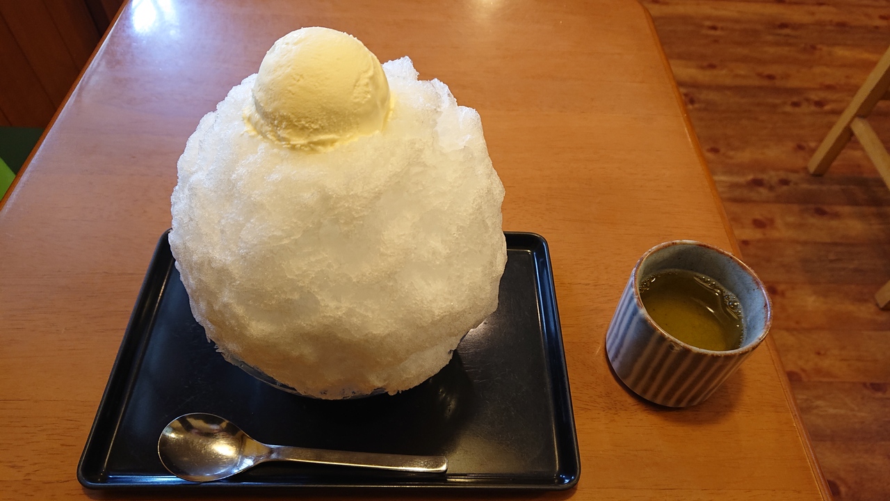 名古屋市の、文化のみちエリアに立地する甘味処です。店内は、少人数のテーブル席のみ。大変落ち着いた雰囲気のお店だと思います。そして、そうした雰囲気を保つための配慮が、お客さんの側にも一定程度は求められています。ゆったりと、かき氷をいただきました。
