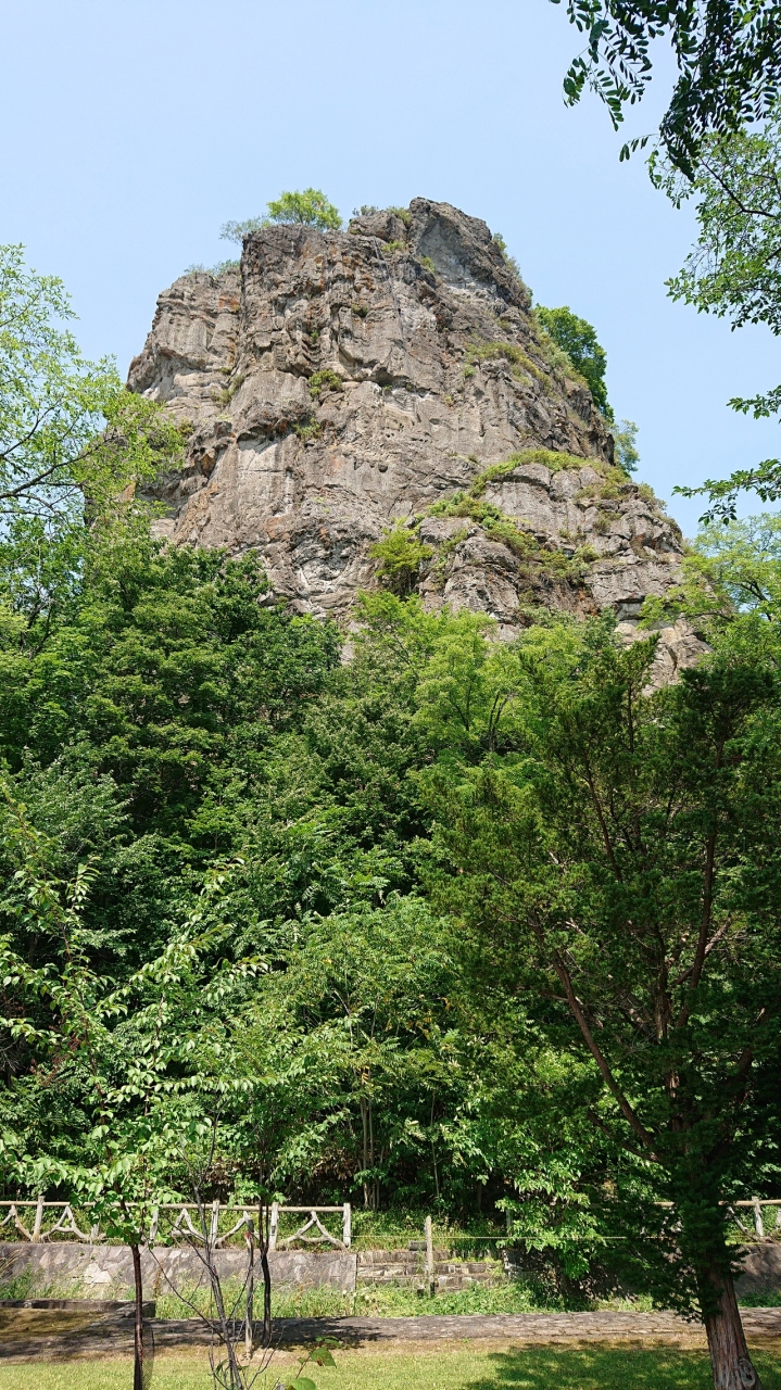 遠軽町に聳え立つ岩です。遠軽といったらまず思いつくスポットであり、まさに、町の象徴に該当すると思います。最上部は展望台にもなっています。岩の周囲の広場から見上げましたが、迫力があり、その雄大さに圧倒されました。