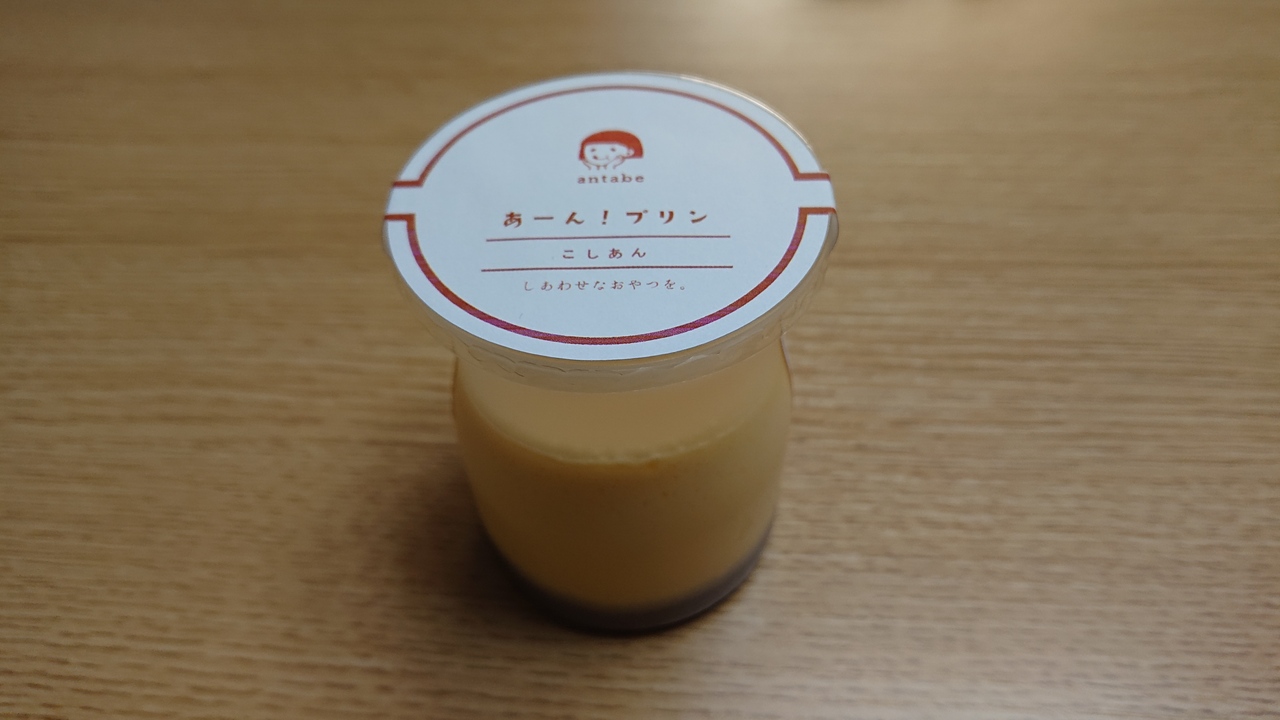 今回は、あーん!プリン(こしあん)、を購入しました。あーん!プリンの特徴は、プリンの底の部分に用いられているのが、カラメルではなくて、あんこであるという点。あまり聞いたことのない組み合わせで、果たして合うのかな、と思いましたが、全然大丈夫。おいしくいただけました。
