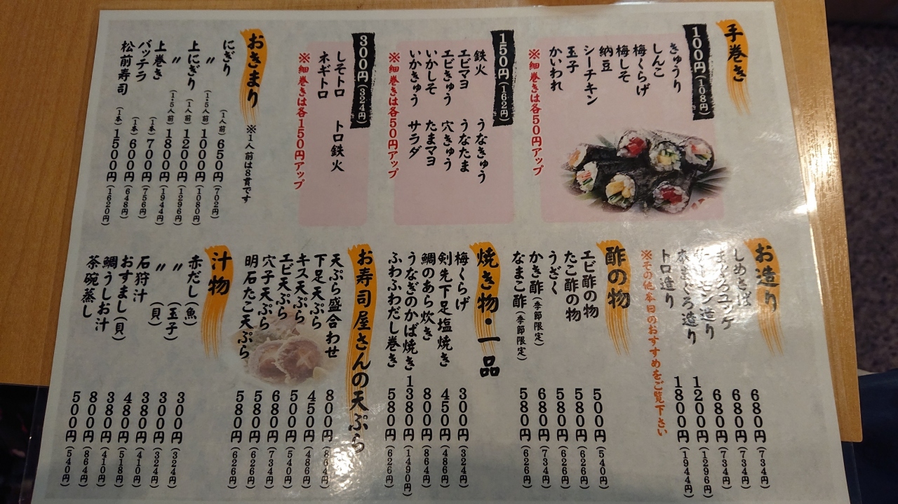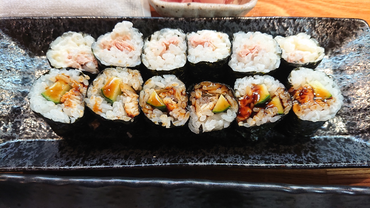 天満橋駅近くのお寿司屋さんです。週末の夜に訪問したところ、店内は訪問時間中常時満席といった感じでした。良い意味で庶民的なお店で、気楽に立ち寄りやすい雰囲気です.一人半プラス、巻物の、うなきゅー、シーチキン、を注文。どれもおいしかったですが、シーチキン巻きは、シーチキンとすし飯のバランスが絶妙で、個人的に気に入りました。