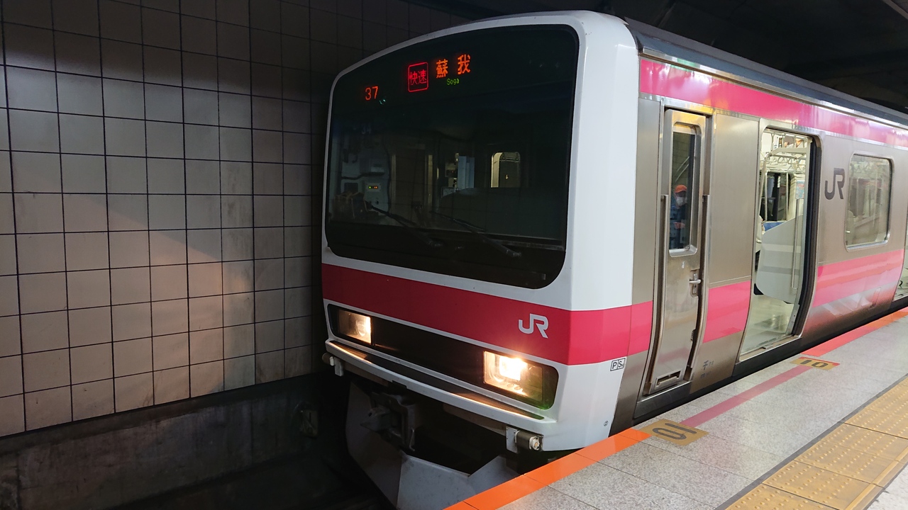 東京駅から、蘇我行きの快速列車を利用しました。ちなみに、東京駅の京葉線ホームは、地下にあり、結構遠かったです。他の線からの乗り換えには、時間に余裕を見る必要があると感じました。途中、先行列車を追いこすなど、快速の名にふさわしい列車だと思いました。