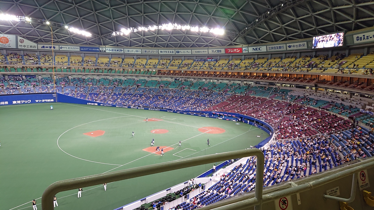 阪神対中日を観戦しました。ちょうど、高校野球やMLBで活躍した投手の登板日で、球場内は、なかなか盛り上がっていました。座席位置は3塁側5階の、外野寄りの内野席。マウンドや、バッターボックス、は遠いことは遠いですが、十分に見えました。
