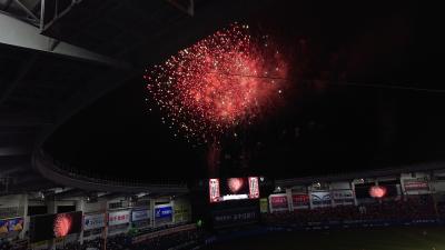 九月にナイターを観戦しました。海沿いに立地しているだけに、海風がやや寒いくらいでした。ちょうど、花火の打ち上げが行われる試合でした。結構な大きさの花火が数十発も打ち上がり、屋外球場ならではのイベントを堪能しました。