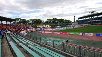 J2リーグの、岐阜対新潟を観戦しました。座席位置は、バックスタンド前方。競技場全体に加えて、上空も見渡すことが出来て、大変開放感がありました。また、試合の方も、陸上のトラックを挟むとはいえ、座席自体が前方でしたので、まずまず良く見えました。