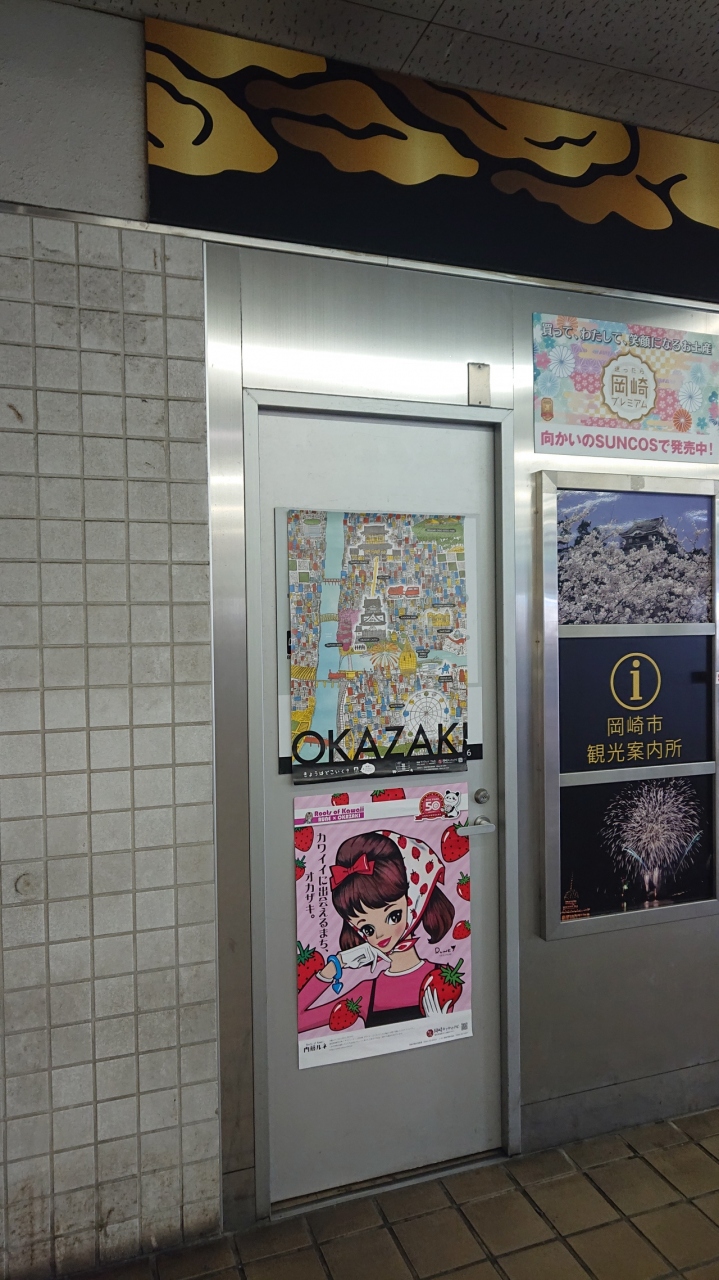 1月上旬の平日の午前10時台に、東岡崎駅を利用した際に、訪問しました。今回の訪問で特に印象に残ったのは、放送開始が目前に迫った、大河ドラマ関連の観光資料が目立ったこと。旅行者のニーズに対応しようと努力していらっしゃるな、と感心しました。