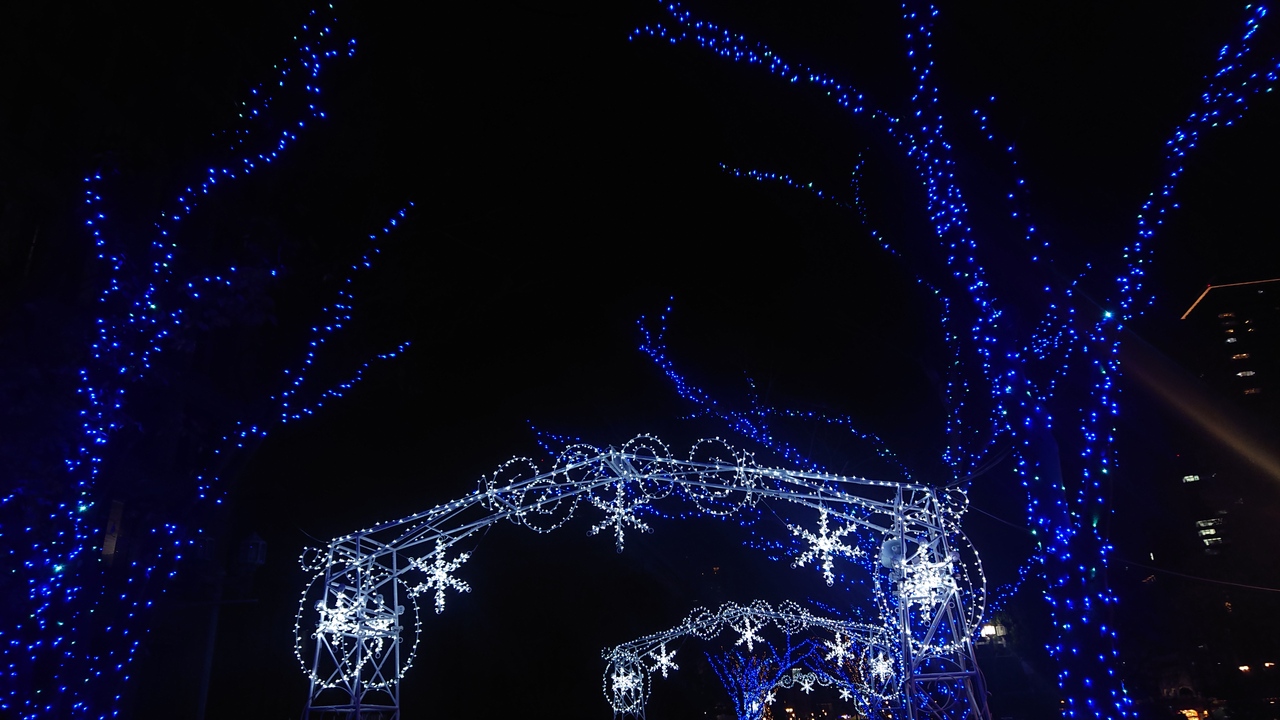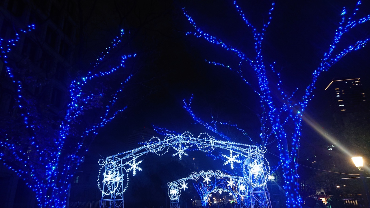 12月下旬の平日の午後9時台に、淀屋橋付近の、「OSAKA光のルネサンス」会場を訪問しました。そのうち、「中之島イルミネーションストリート」は、ゲートの光の点滅がムードを盛り上げ、それが全て点灯した瞬間は、周囲の青色とゲートの白色のコントラストが美しく、綺麗でした。