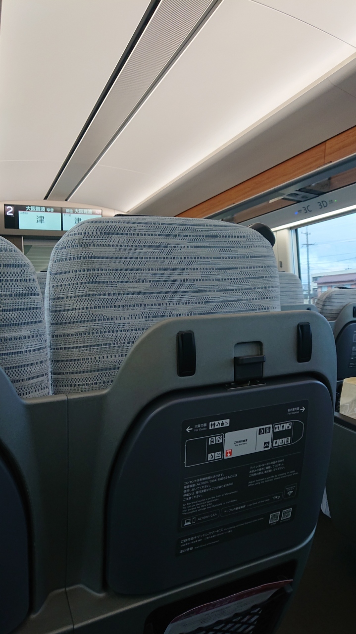 12月下旬の平日、午前9時名古屋発の、ひのとり59列車に乗車しました。座席は、レギュラーシートの窓側を選択しました。座席のリクライニングシートには、後席との干渉が避けられる、バックシェル構造が採用されていました。これにより、後席に気兼ねなくシートをリクライニングでき、快適な移動となりました。