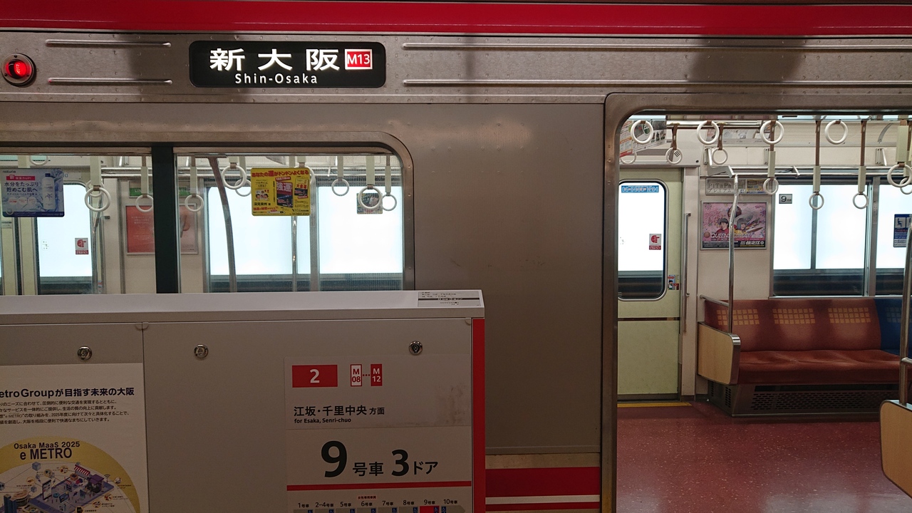 12月下旬の平日の午後10時台に、新大阪駅から新幹線に乗り継ぐべく、淀屋橋駅から新大阪駅までの区間に乗車しました。乗車した列車が、新大阪駅が終点の列車だったため、車内は混雑しておらず、着席できました。それでも、結構な人数のお客さんが乗車してはいました。