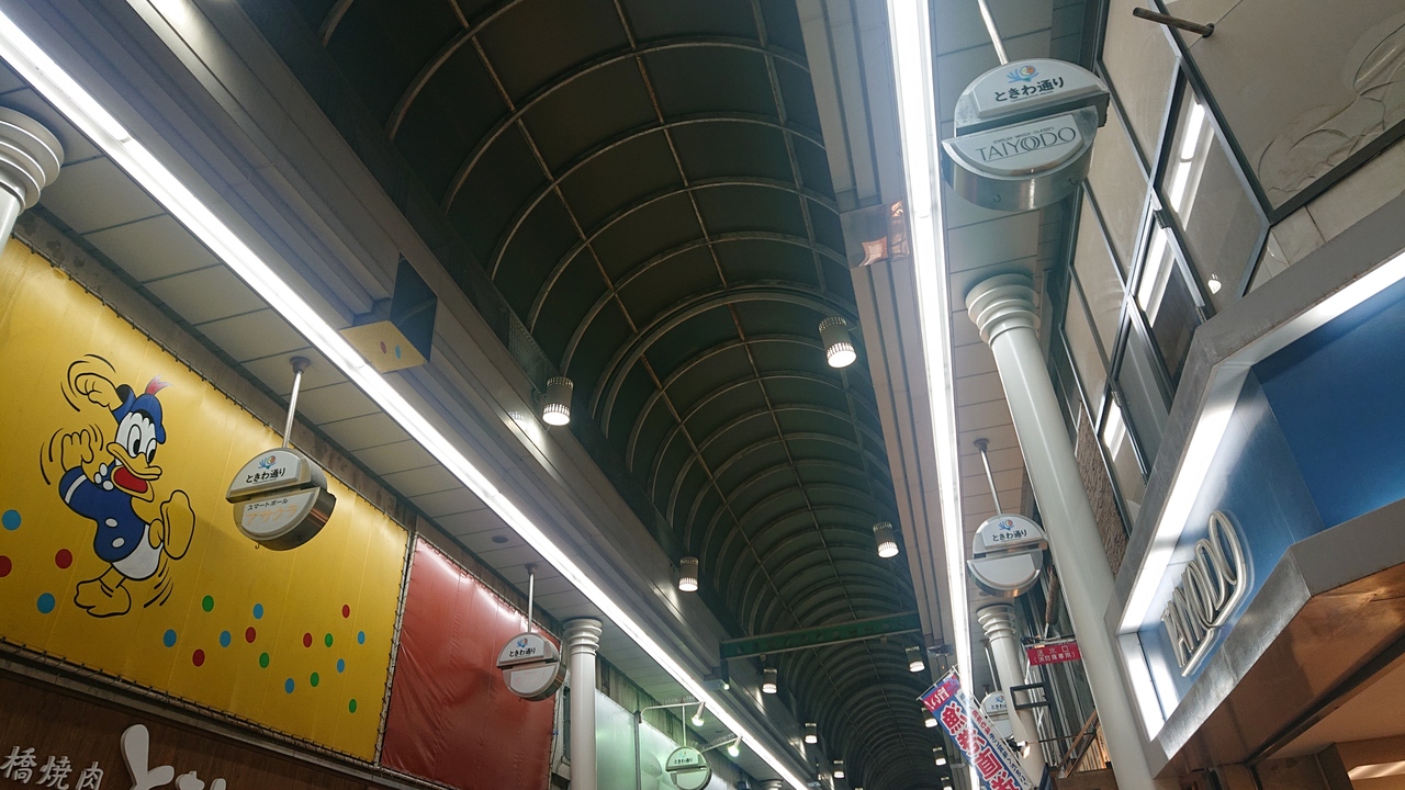 豊橋街中を南北に貫くアーケード通りです。10月下旬の平日夕方の時間帯に訪問しました。通りの両サイドには、飲食店を中心として、たくさんのお店が軒を連ねていました。それらのお店を目指す人で、通りには一定程度の賑わいがありました。