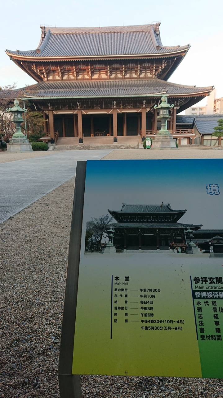 11月上旬の休日の午後4時台後半に訪問しました。この時期の、本堂の閉扉時間は、午後4時30分とのこと。したがって本堂の扉は閉じられていました。もっとも、境内自体は開放されており、参拝自体は可能でした。実際に、数は少ないものの、参拝者が見受けられました。