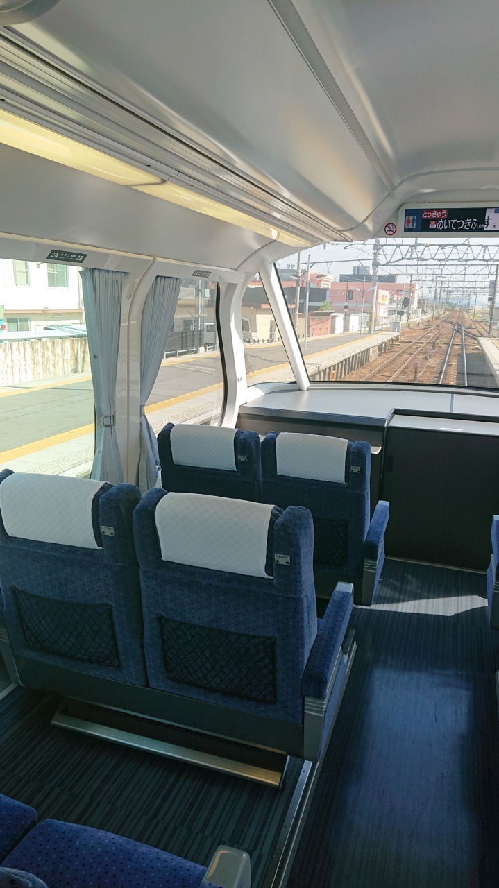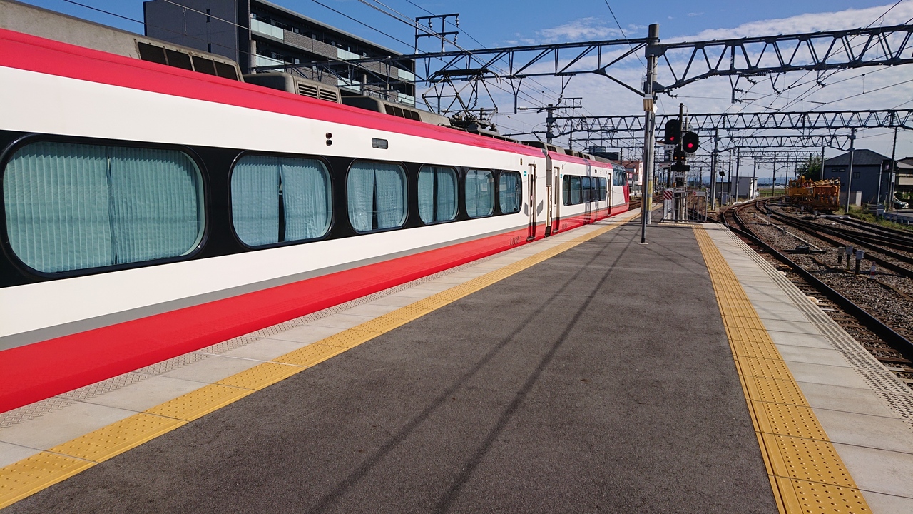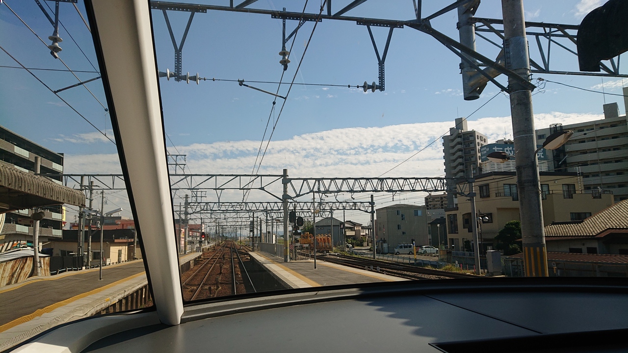 10月中旬の平日お昼過ぎの時間帯に、新安城駅から金山駅までの区間、特急岐阜行きに充当されていた、パノラマスーパーの展望席に乗車しました。座席位置は、最前列でした。展望車は、現在原則として、豊橋方に連結されています。したがって、後面展望を楽しむことができました。