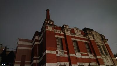 大分市中心部に立地している、元銀行のレンガ建築です。11月下旬の週末夜の時間帯に訪問しました。ちょうど、「おおいた光のファンタジー」の開催期間中とあって、ライトアップされた建物と、建物付近の木のイルミネーションとがコラボするかたちとなっており、綺麗でした。