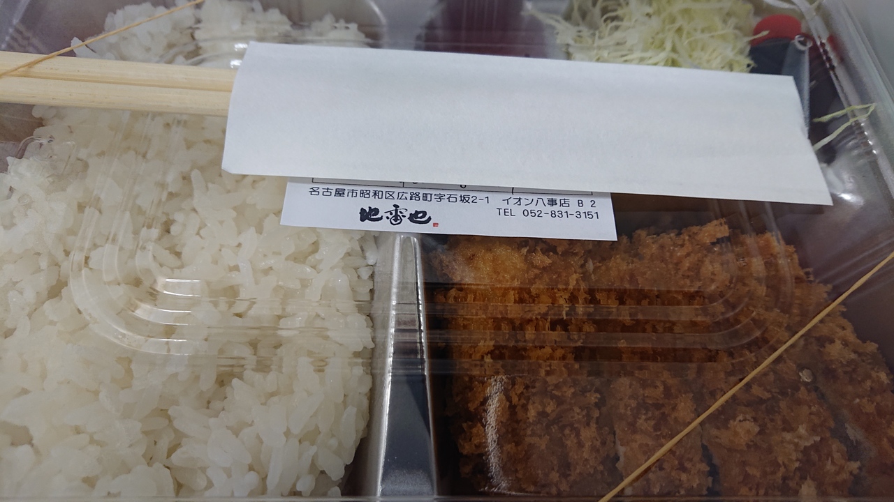 イオン八事店内に立地する、「天むす」と「とんかつ」の専門店です。8月下旬の休日の午後1時台に訪問しました。そして、テイクアウトで、「ロースとんかつ弁当」を購入しました。なお、同名の弁当が2種類ありましたが、今回は、とんかつの量の少ない、お値打ち品の方にしました。とんかつは、揚げたてで提供され、持ち帰った後に食べても、衣にサクサク感があり、おいしくいただけました。