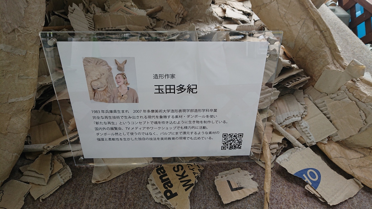 お盆の時期のお昼頃の時間帯に訪問しました。施設内では、子ども向けのイベントが開催されており、大変な賑わいぶりでした。今回の訪問で、特に印象に残ったのは、「パルプアート」の展示。ダンボールが素材として生かされており、ユニークだな、と感じました。