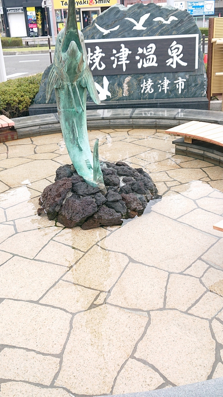 焼津駅前に設置されている足湯です。7月中旬の平日のお昼頃の時間帯に訪問しました。案内板の表示によると、焼津市の天然温泉をPRするための施設である、とのこと。確かに、駅前に、堂々とこのような施設が設置されているインパクトは強く、着想が良いな、と感じました。