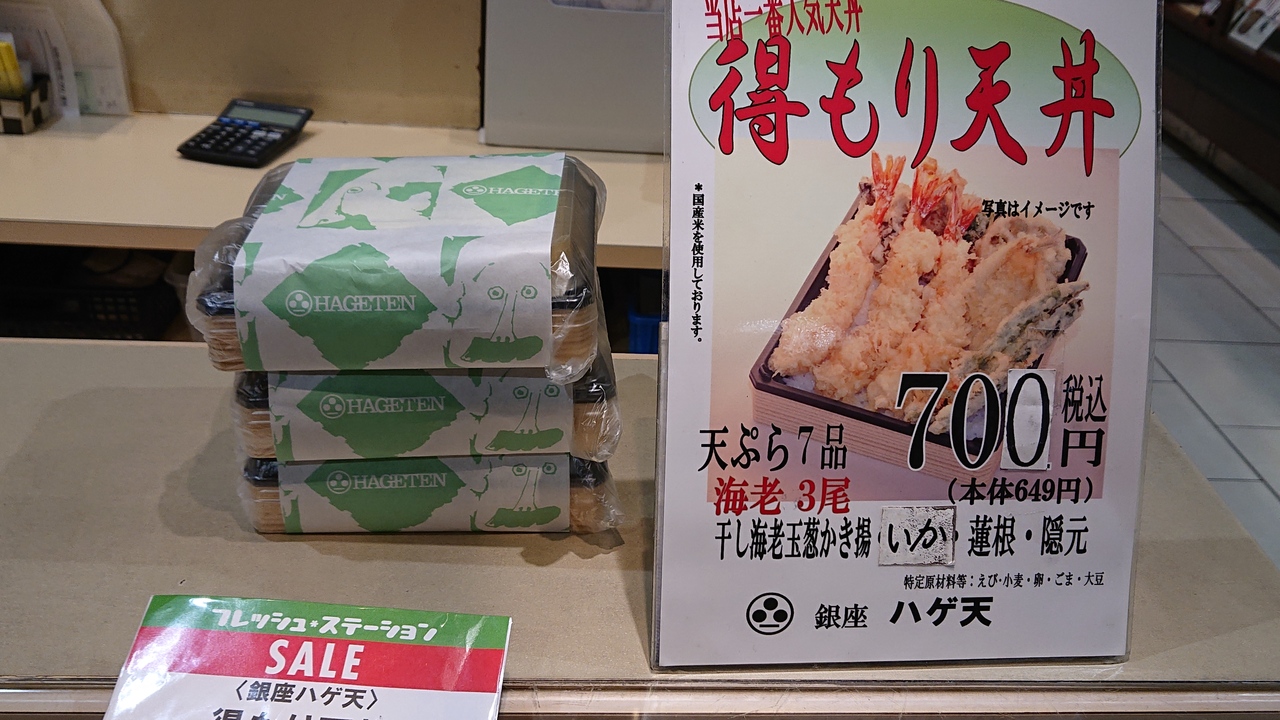 名鉄百貨店の地下に立地している、天ぷらのお店です。6月中旬の平日午後4時台に訪問しました。そして、夕食用に、以前に購入しておいしかった記憶の残る、「得もり天丼」を購入しました。海老天三尾にかき揚げ等が添えられており、食後には、天ぷらを食べた感がありました。