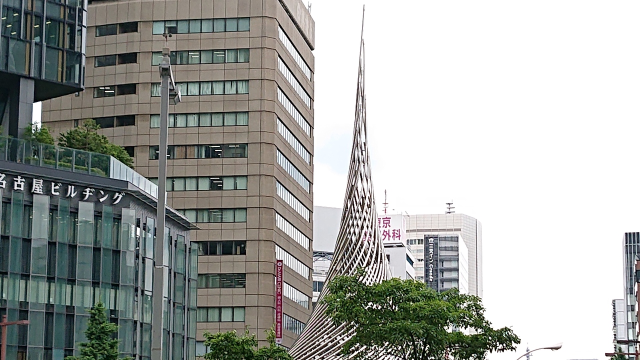 名古屋駅前にある高層ビル群の中でも、比較的早い時期に完成したビルです。6月中旬の平日午後の時間帯に訪問しました。今回の訪問で、特に印象に残ったのは、オフィス開設部分の雰囲気。繁華な場所に立地していながら、落ち着いた印象を受けました。