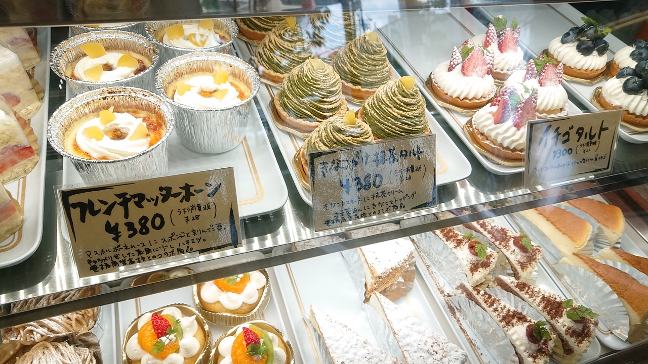 6月上旬の平日の午前11時台に訪問しました。店頭には、多数のケーキが並べられていました。その中から、ケーキ数点を購入。そのうち、「きなこがけ抹茶タルト」は、豊橋商業高校とのコラボ商品とのこと。きなこと抹茶は意外にも相性が良い感じで、おいしくいただけました。