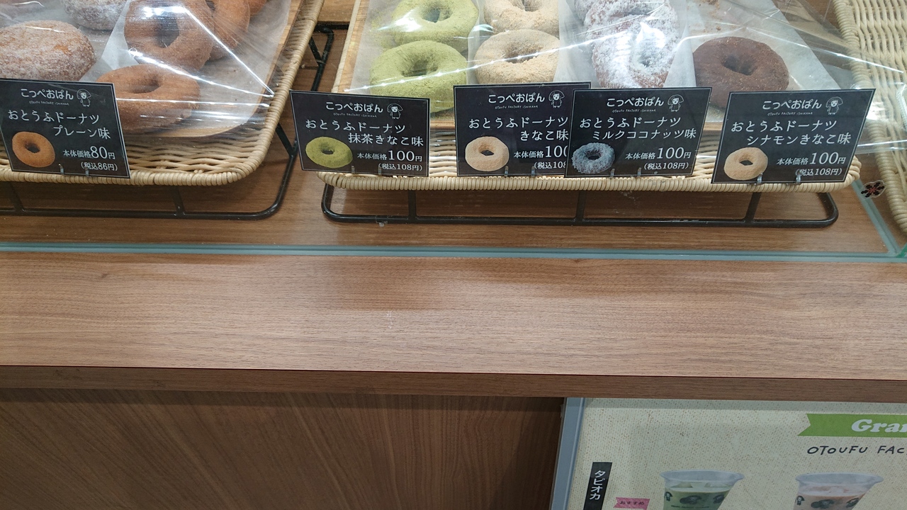 6月上旬の平日のお昼頃に訪問しました。レジが先客でふさがっていましたが、自分も注文に迷っていたため、むしろちょうど良かったです。購入した、「おとうふドーナツ(抹茶きなこ」は、抹茶きなこがドーナツと合うのか心配でしたが、全然アリで、おいしくいただけました。