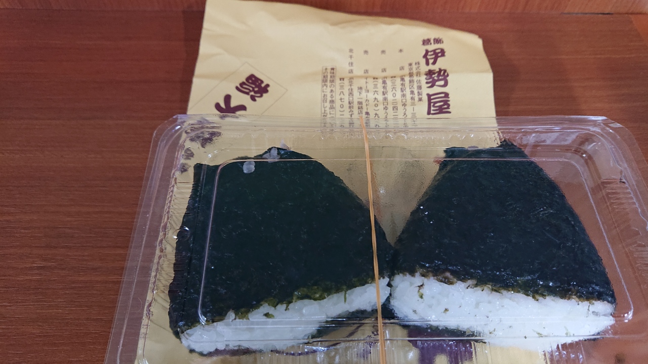 亀有駅近くの商店街、「ゆうろーど」中程に立地する和菓子屋さんです。4月下旬の平日午後の時間帯に訪問しました。店頭は、お客さんで賑わっていました。購入したのは、「おむすび」と、柏もちの「味噌かしわ」。前者は、2個入りの、鮭と梅が具材のものを選択。素朴でおいしくいただけました。後者は、京味噌あんが用いられ、独特の甘さ、結構ボリュームがあり、味にも量にも満足しました。