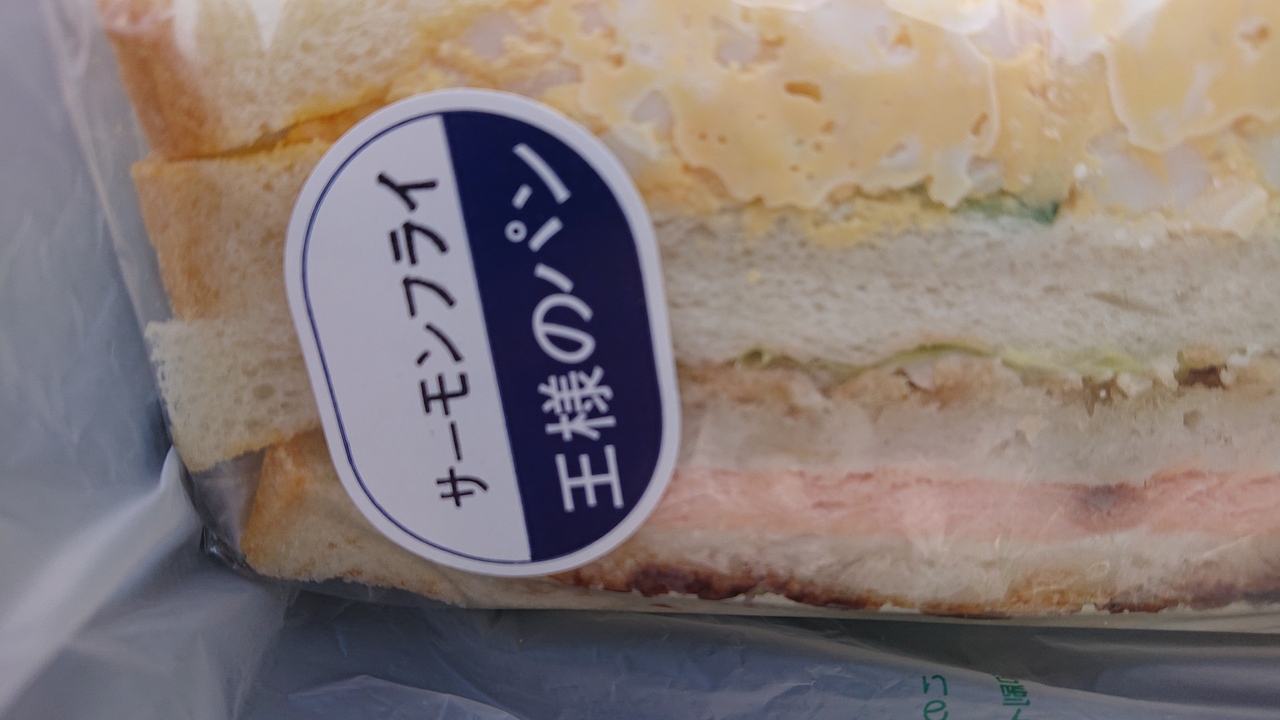 昼食用の惣菜系のパンを購入したく、5月中旬の平日お昼頃の時間帯に訪問しました。そして、「サーモンフライサンド」を購入しました。なお、サーモンフライの入ったサンドイッチと、卵サラダの入ったサンドイッチがセットになっていました。前者からは、サーモンとパンは、意外と合うのだな、と感じました。後者は、卵サラダたっぷりで、ボリューム感がありました。いずれも、おいしくいただけました。