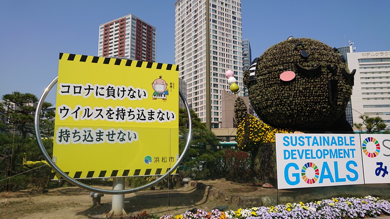 3月中旬の週末のお昼頃に訪問しました。「モザイカルチャー出世大名家康君」の周囲は、多くの人した賑わっていました。ただ、全ての人がモザイカルチャーの鑑賞目的ではなく、むしろ、多くの人は、休憩目的のようでした。モザイカルチャー周辺は憩いの場になっているのだな、と感じました。