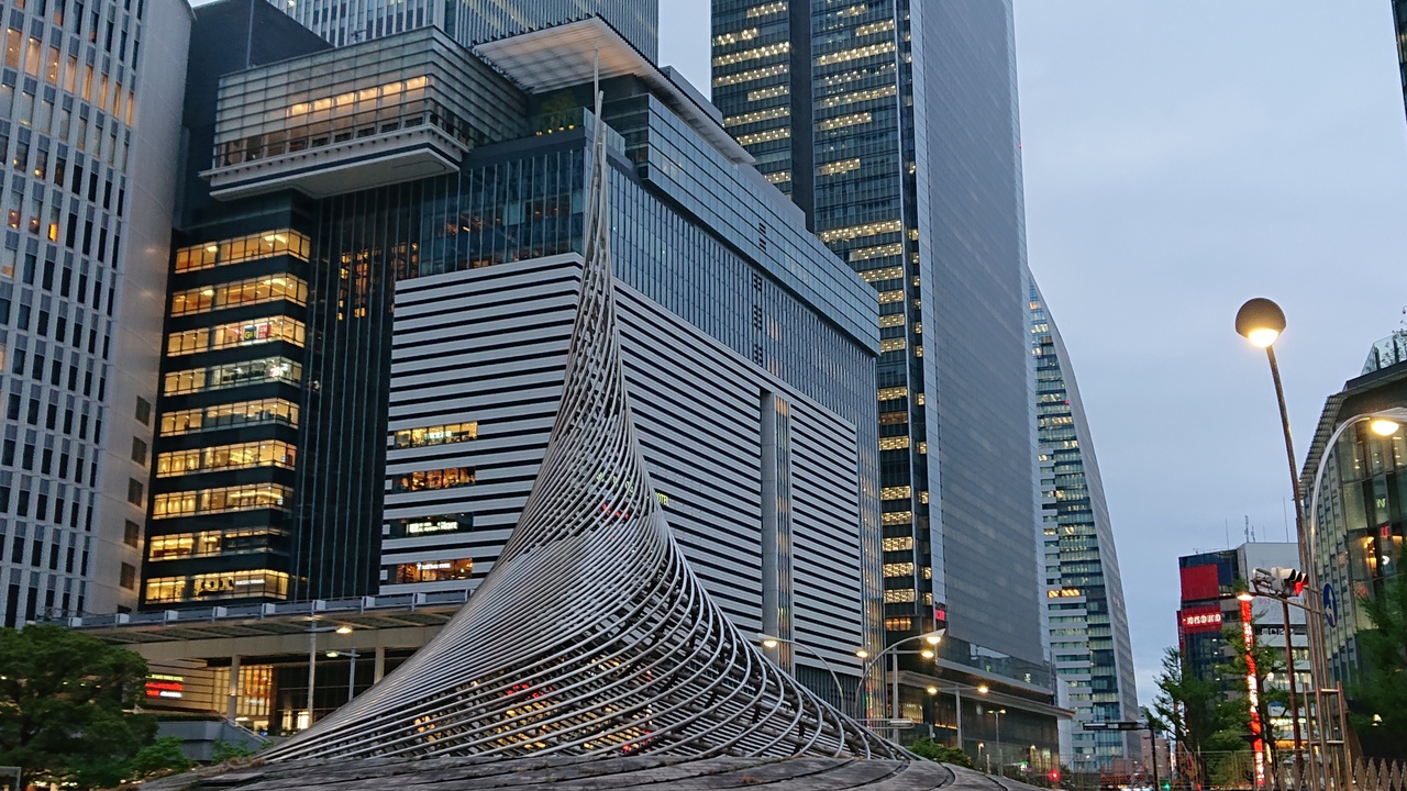 名駅には、平成年間に多数の高層ビルが建設されましたが、こちらのビルもそのうちの一棟です。4月中旬の平日夕方に、笹島交差点付近から眺めました。そして、改めてですが、独特な外観を有する高層ビルだな、と感じさせられました。