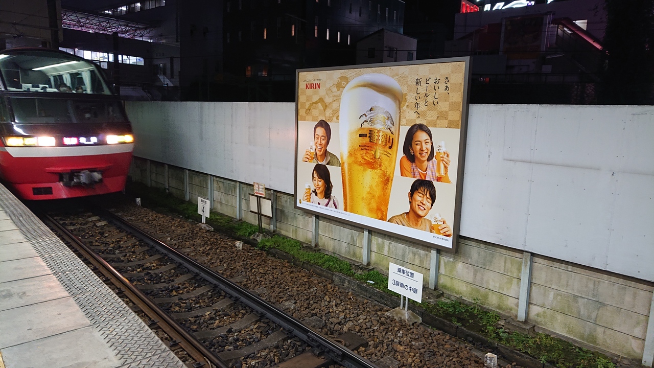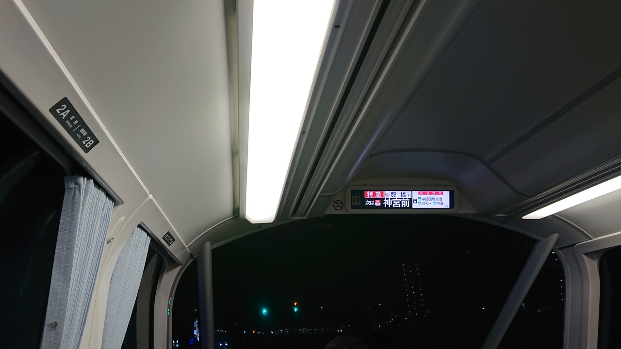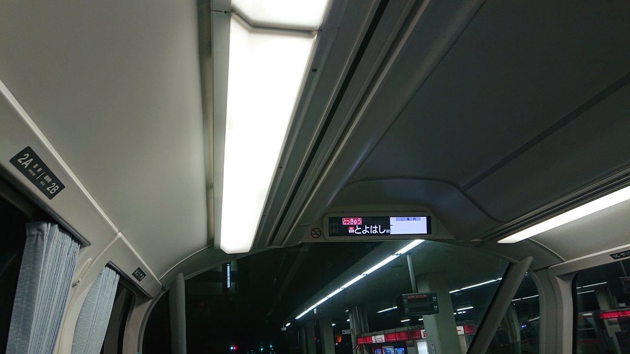 1月中旬の休日ダイヤの日の19時台に、豊橋行き特急に充当されていた、パノラマスーパーに乗車しました。区間は、金山駅から新安城駅。座席位置は、パノラマ席の前から3列目でした。パノラマ席に網棚はありませんが、足下が広めで、大きな荷物が無ければ特に支障なし。また、3列目でも、充分視界良好で、展望を楽しめました。