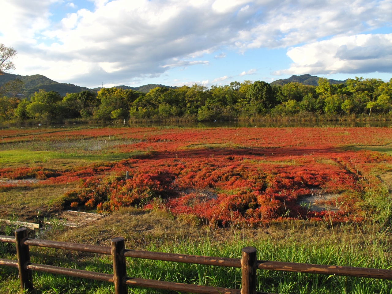 網走の能取湖程の広大なレッドカーペットではありませんが、西日本でも希少な景観を楽しむことが出来ます。