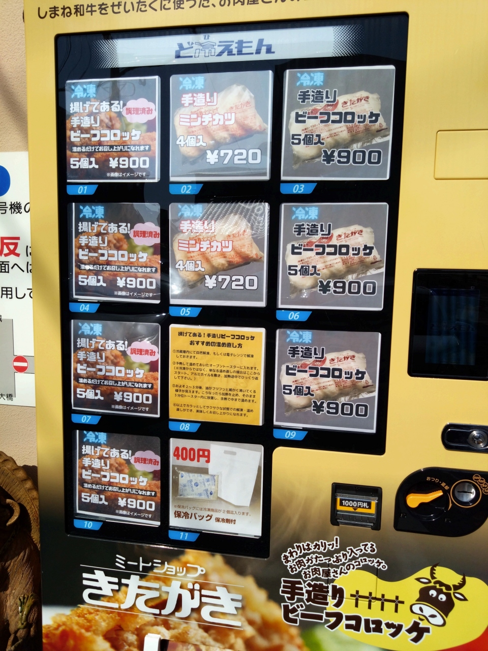 店舗に、ど冷えもん(自販機)があり、店休日でも冷凍コロッケ(5個入り)を買うことが出来ます。- 旅行時期