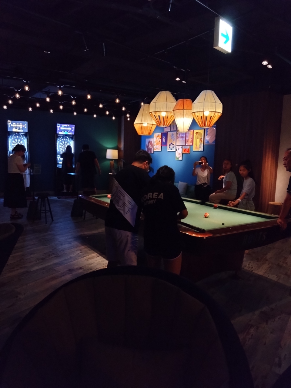 ダーツゲームなど順番待ちは多くの外国人とうまくコミュ出来ないとなかなか難しそう。