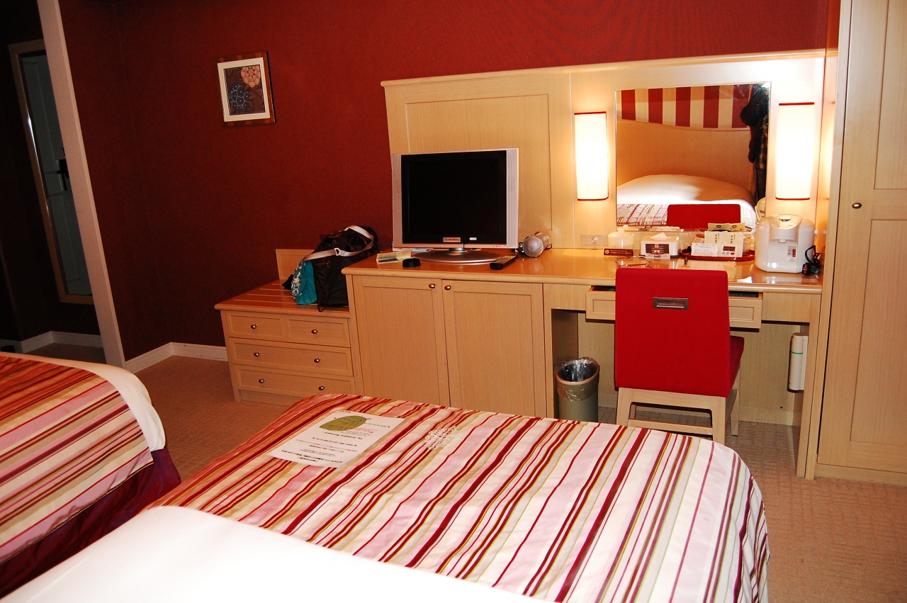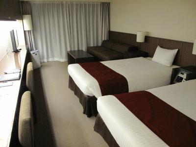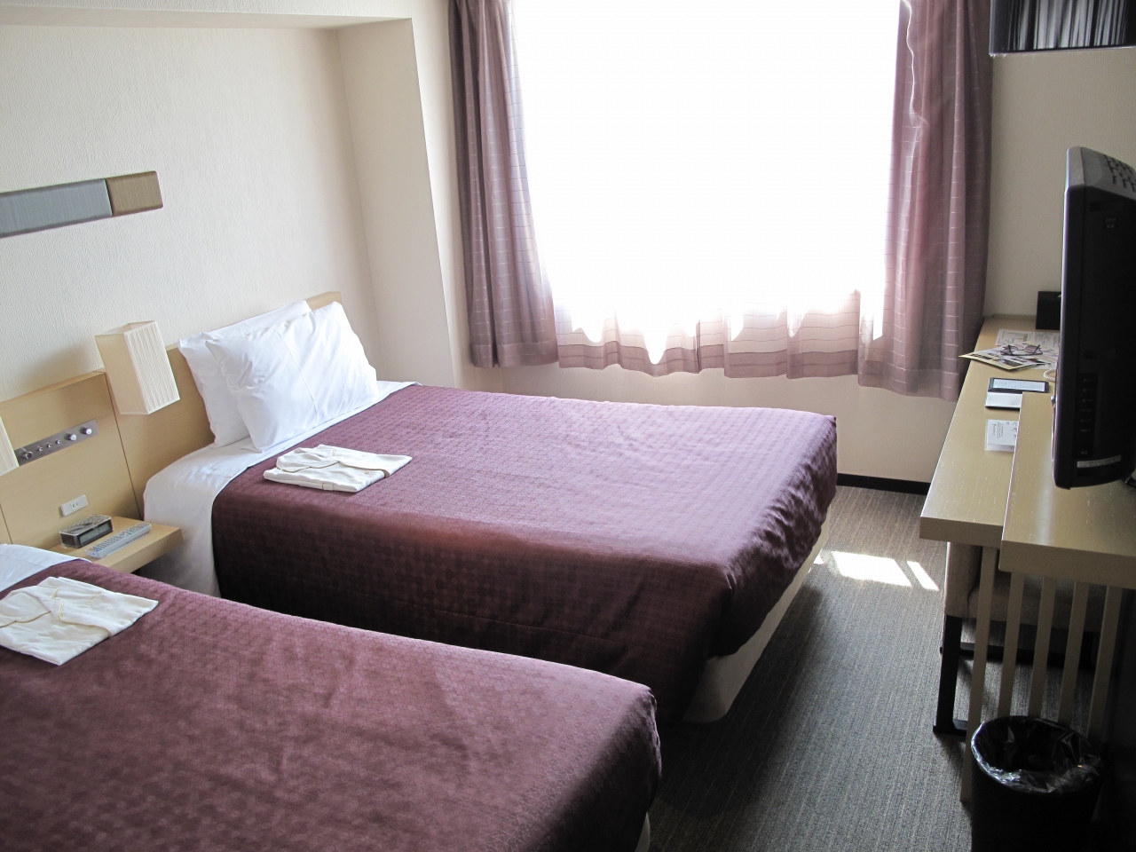 ツインルームはダブルの3割増近い広さ(図面で見た感じ)があり、32型TVもあって、ゆったりくつろぐことが出来ました。勿論、清潔感も上々です。