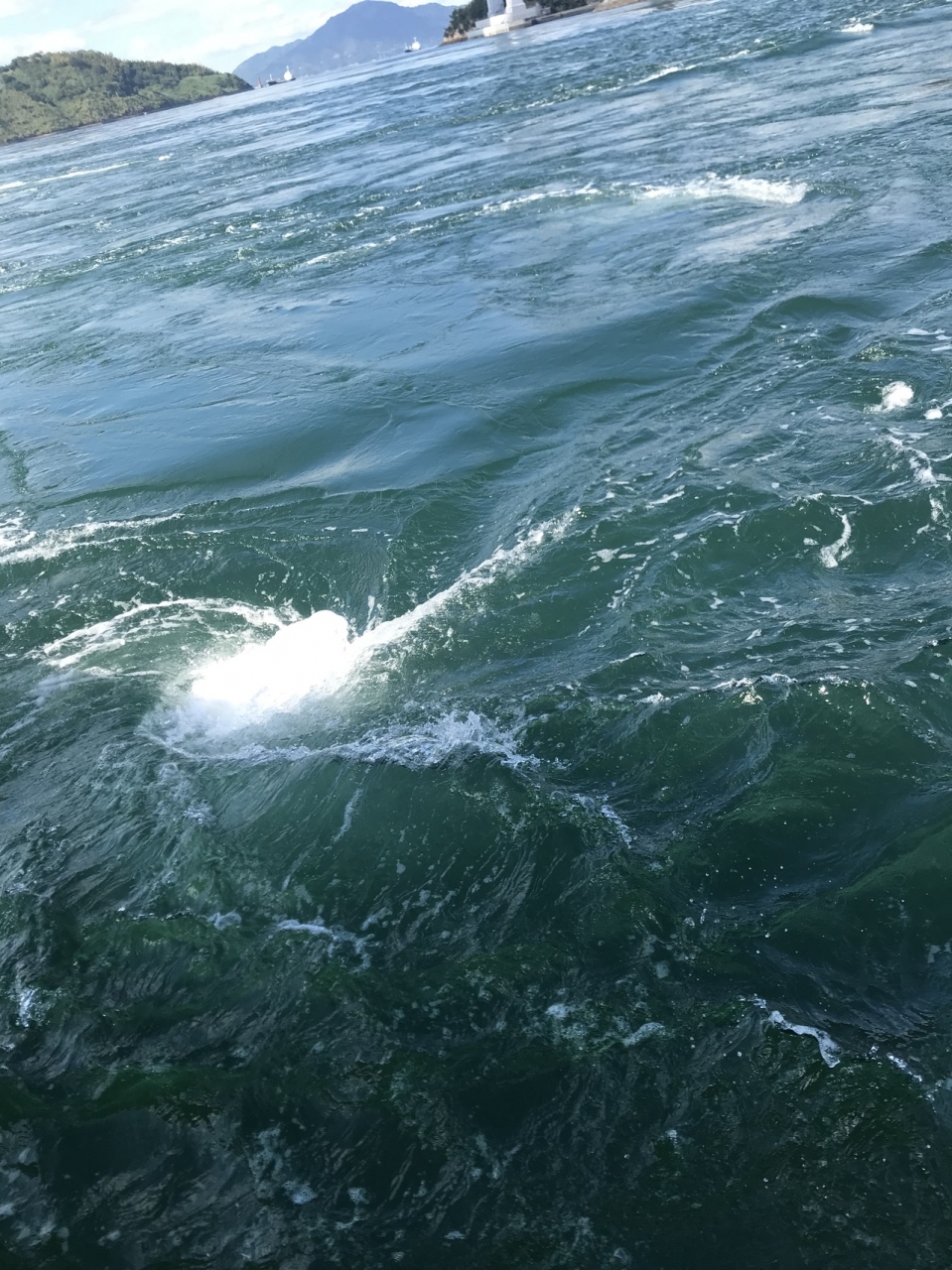 鳴門のうずしおよりは小さめですが、わき潮やちいさいうずしおが船の目の前で見れます。