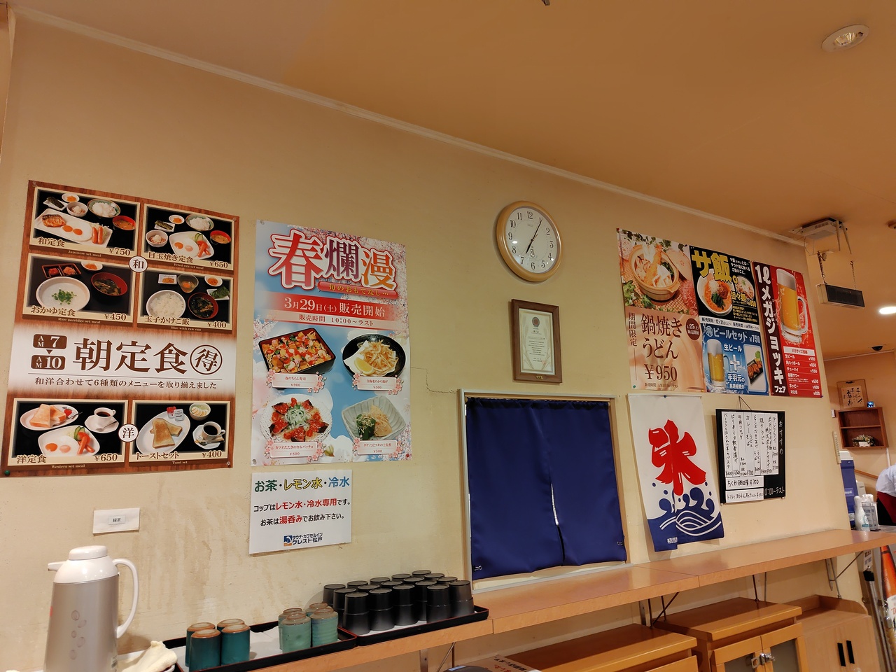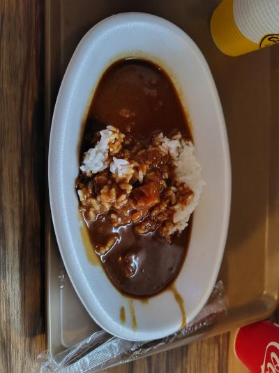 ソフトドリンク、味噌汁は24時間飲み放題、夜は1人1杯までですがラーメン、朝はカレーのサービスがありました。