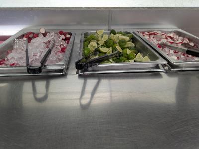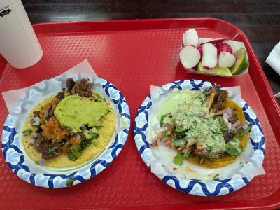 アドバダタコスは、スパイスで味付けされた豚肉に、アボガドのオリジナルソースがかかっているのですが、肉に旨味が詰まっていて美味。アサダタコスは、臓物系の臭みなどなく、カリカリ感があってこちらも美味。フレンチフライの上に牛肉とサワークリーム、チーズの乗ったCame Asada Friesも美味と聞いたのですが、結構なボリュームなので今回はパス。箸休めのラデッシュは、サクサクしていて美味でした。飲み物には、メキシカンなソフトドリンクもありました。