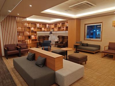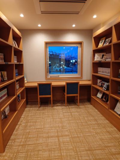 部屋は少し広めで、大きなスーツケースも十分に広げられる広さがあり、荷物を置くスペースも十分ありました。1階のフロントには枕コーナーがあり。好きな物を選ぶことができます。2018年オープンだけあって設備もしっかりしており、水回りも完璧。大浴場もあるが部屋のバスも深めでくつろげます。2階にはラウンジでは、廃車になったJR北海道の特急車両281系グリーン車の座席も活用。コーヒーマシンもあり、宿泊者は無料。漫画も完備しています。