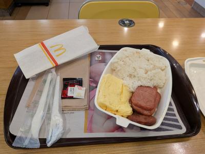 ハワイ州に約80店舗展開するマクドナルドでは、朝マックにも独特のメニューがあります。その一つが「ローカルデラックスブレックファスト」。ホカホカのライス(比較的軟らかい)、スクランブルエッグ(少し硬め)、スパム、ソーセージと、まるで沖縄で食べるポークエッグのよう。アロハ醤油をご飯につけて食べるのがハワイ風で、ハワイの食らしさを一気に楽しめるメニューで、もちろん美味でした。ハワイに行ったら一度は食べたいメニューです。