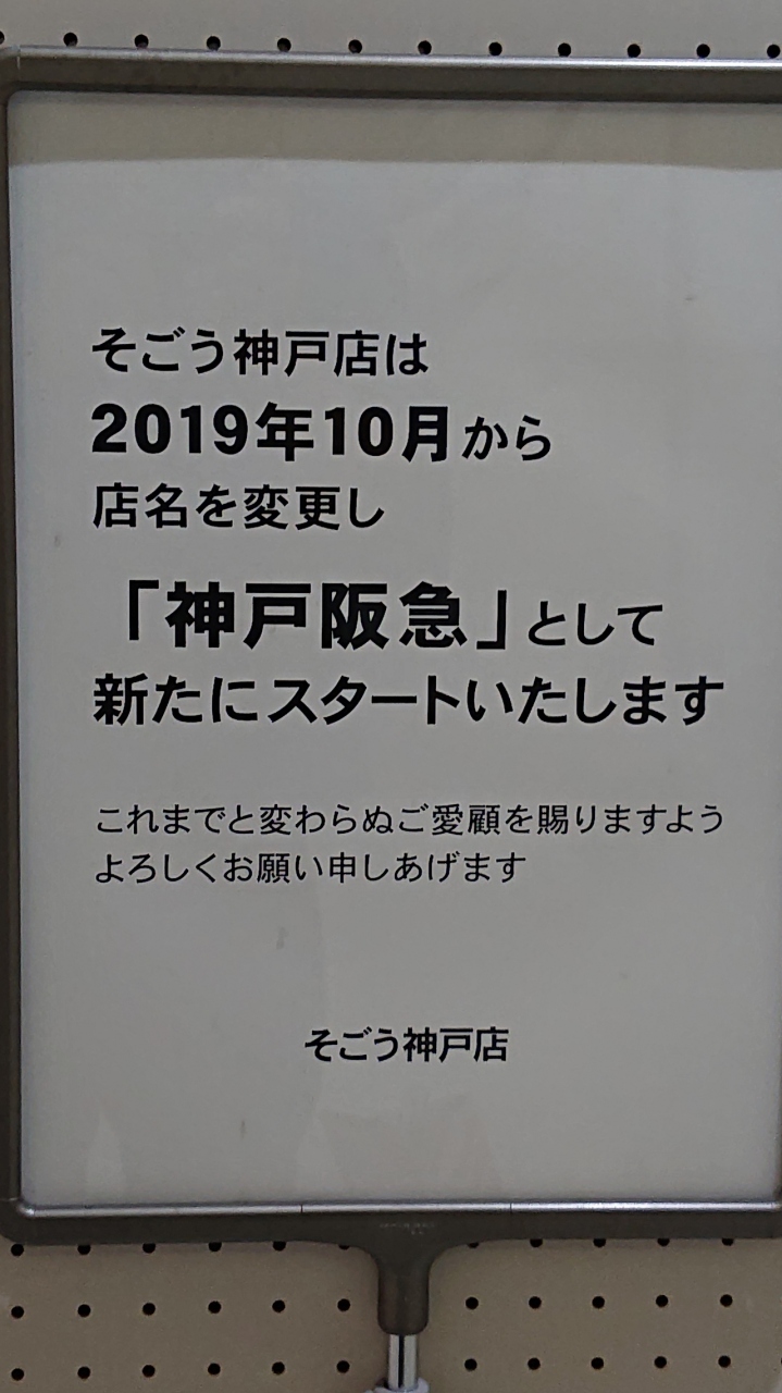 阪神三宮駅改札口前に直結した百貨店。1933年に開業したそごうの中核店舗であり、1995年1月の阪神・淡路大震災では建物が半壊したものの、1996年4月に全館復興開店。そごう破綻後も生き残り、そごう西武の代表する店舗でしたが、2017年10月、親会社の迷走により高槻西武とともに阪急阪神百貨店を運営するH2Oリテイリングに売却。その後、H2Oリテイリングが運営するそごうとして営業してきましたが、2019年9月末をもってそごう神戸店としての営業は終了、10月から屋号も神戸阪急になります。店内は、そごう破綻後、西武百貨店の店作りを基本にかなりの改装を行ったことけら都会的なイメージ、西武風の品揃えとなり、昔のそごうとも阪急とは異なる都会的な印象。新館には、ロフトや紀伊国屋書店に加えて、兵庫県産の海産物や食材が買える「ひょうごふるさと館」もある。そごうがなくなるのは一抹の寂しさがありますが、新しい神戸阪急にも期待したい。