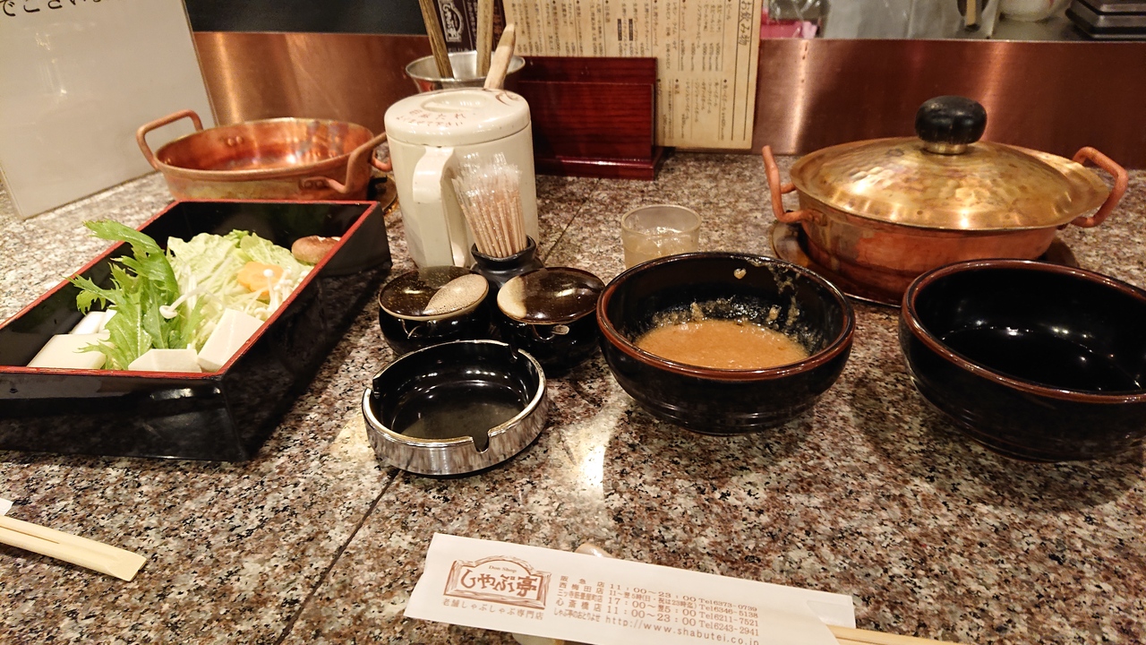 なんばウォークにあるしゃぶしゃぶのお店。地下鉄堺筋線日本橋駅改札口からすぐ。一人ひとりに鍋のあるしゃぶしゃぶのお店で、もちろんお一人様OK。お肉はレベルがあり、ランチの場合、一番安いものだと豚しゃぶSサイズが820円、牛肉だと1000円とコスパはかなりよい。しかも、うどん、野菜、おかわり自由のご飯つき。ただ、やはり安いお肉であれは、灰がそれなりに出るのですが、灰汁取りがない。また、胡麻ダレはあまりコクがなくすぐ薄まる。せっかくの出汁の出たお鍋のスープは飲めないのは残念。