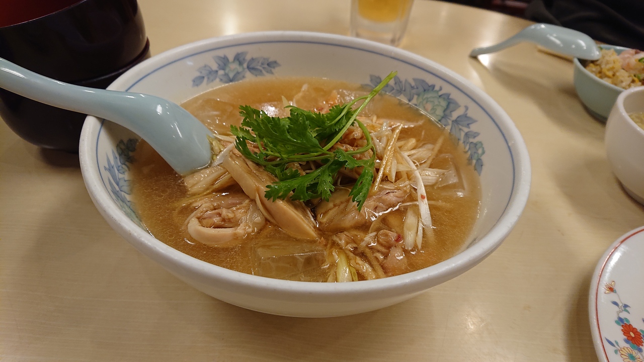 表町商店街の奥の方にあるお店。お店の店構えからチェーン店とは違う老舗の中華料理店という雰囲気。お店のホームページによると大正14年に創業したとのこと。お店に入る円卓のテーブルが並ぶ。まさに昭和の中華料理店。気取らないけど本格的な中華料理が楽しめます。メニューは一品料理とコースがありますが、せっかくなので食べたいものを選ぶことに。広東料理のお店ですが、麻婆豆腐もエビチリもチェーン店では味わえない味。油淋鶏はサクサクした衣とタレの相性が最高。炒飯はもちろんパラパラ。壁に貼ってあった限定メニューの冷鳥そばも注文。鳥の臭さはなく麺も中国で食べたような麺。夜は少し高めですが、個室もあり、宴会もできるので、家族でもビジネスでも使えるお店だと思います。次回はランチで行きたい。