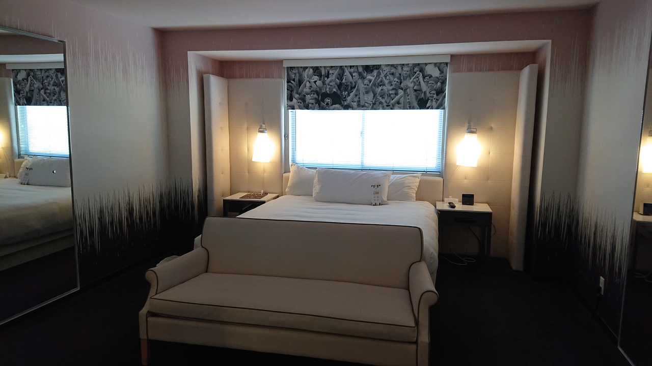 ラスベガス・ストリップの北端。もとは2011年5月に営業を終了したサハラホテル。サハラホテルと言えば、サハラ砂漠やモロッコをテーマにしたホテルで、エルビス・プレスリーやフランク・シナトラもショーを行ったという名門ホテル。2014年に買収したSBEエンターテインメントグループが改築しSLSとしてオープンしました。さらに2018年にMerueloグループに買収され、1億円かけて再改装中。名称もサハラホテルに戻すとのこと。有名デザイナーが監修したというホテルは、ワールドタワー、ストリートタワー、グランドタワーの3つから構成。ワールドタワーに泊まりましたが、部屋内には大きな鏡が多用されており、広く感じます。また、ラスベガスのホテルには珍しく冷蔵庫があり、飲み物を冷やすこともできるので、大きく役立ちました。やや古さは感じさせますが、問題はなし。ただ、リゾートフィーをしっかり取る割には、Wi-Fiのスピードは残念。ストリップからはかなり離れているので、ホテルに直結したモノレールを使って、他のホテルのバフェやカジノに行くのもよいかと。