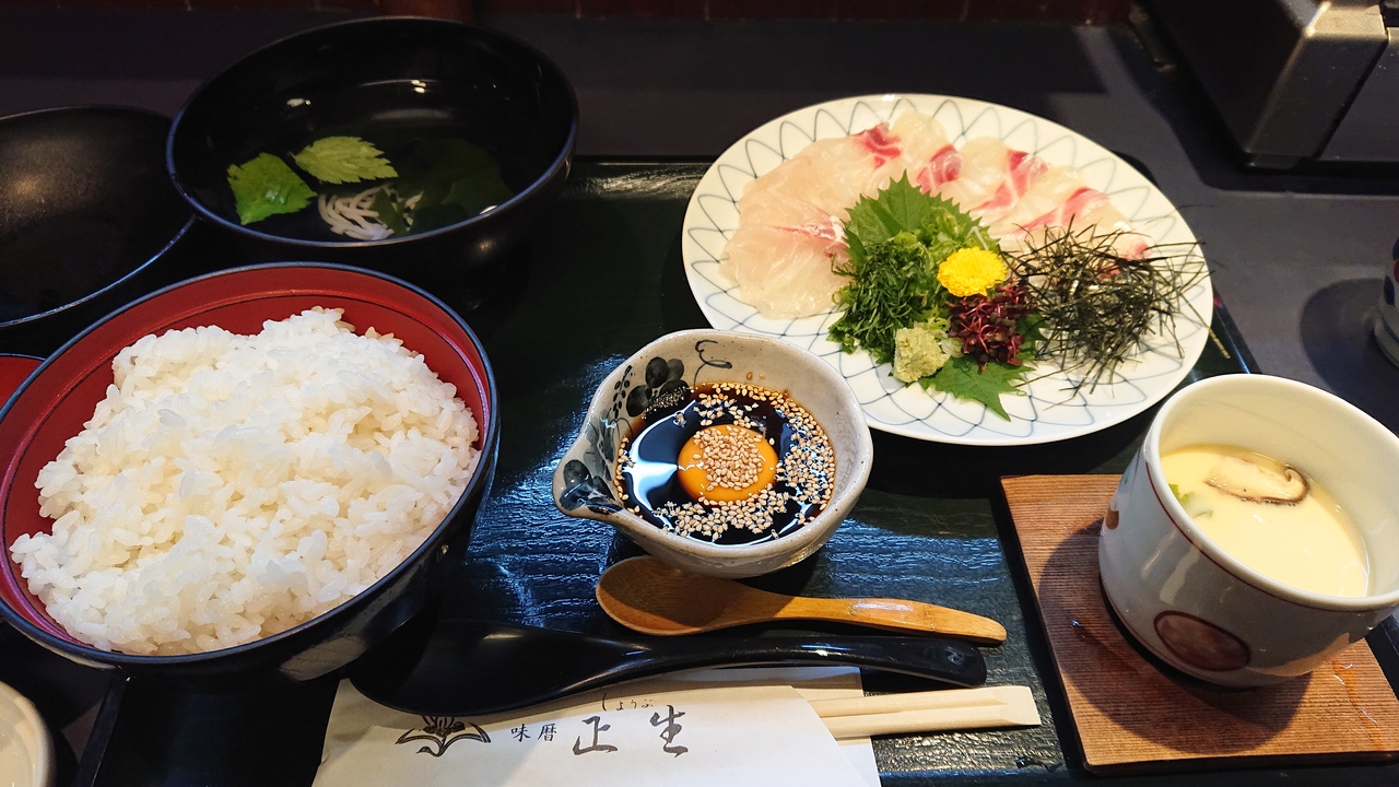 松山市駅からすぐ。伊予鉄高島屋からそのまま線路方向へ、踏切の手前にあるお店。1階はカウンターのみ、2階は座敷席。土曜日の12時少し前に入りましたが、お客さんでいっぱい。ランチは握り寿司やちらし寿司、うにめし、いくらめしなどに加え、宇和島名物「活鯛めし」があります。鯛は良いものがないときは出さないようで、歯応えがありプリプリしている。これに胡麻と卵黄の入ったタレをご飯にかけて食べますが、箸が止まらない。美味。しかも、茶碗蒸しまでついて1200円というリーズナブルな価格で、コスパ最強。高島屋の袋を持った地元の方の利用が多い印象でお寿司が多数注文されていました。しかし、鯛飯だけでも十分やっていけるのではないか、でも観光客が増えないほうがいいかな、なんて思ったお店でした。また、行きたい。