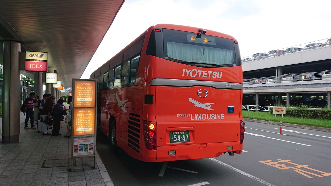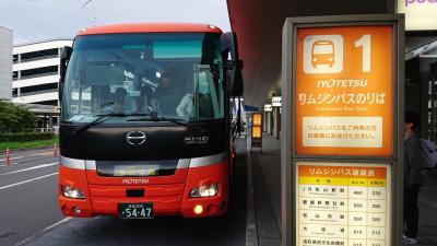 松山空港と市内を結ぶ伊予鉄道が運行するリムジンバス。平行して走る同じ伊予鉄バスの路線バスよりも運賃は高いものの、松山市内までノンストップ、国内線のフライトにあわせて運行、スーツケースなどの置き場かある、速達性、観光型のバスを使用するので快適等の理由から断然有利。空港からJR松山駅まで15分、松山市駅まで24分、大街道まで30分、道後温泉まで40分と速達。往路(松山空港発)は、道後温泉行きと松山市駅行きと2系統で松山市駅までの停留所は同じ。松山空港をほぼ同時に出発。復路(松山空港行き)は3系統あり、道後温泉発は松山市駅を通らず、松山市駅発、JR松山駅発のそれぞれノンストップで空港まで結んでいます。以前は青いバスでしたが、現在は伊予鉄の市内電車、郊外電車、バスと共通のオレンジ色のバスで目立ちますが、松山観光港行きのリムジンバスと同じ車体(こちらのバスの側面には「ISHIZAKI」と船(石﨑汽船)がデザインされています)なので間違わないように注意。運賃は後払いです。