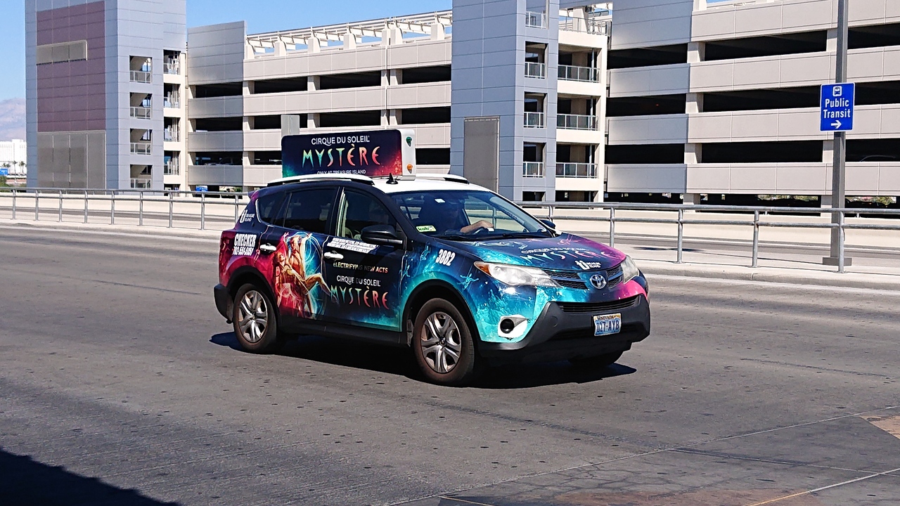 ラスベガスのタクシーは、周辺ホテルで開催される催し物の看板をつけた車両が多く、比較的フレンドリーな運転手さんが多い印象。台数がかなり多い上、ラスベガスの街の範囲での営業なので、近距離でも比較的嫌な顔はされないと思います。初乗りが3.5ドルで、134メートルごとに0.24ドル加算されていくので、メーターはすぐに上がっていく印象ですが、日本のタクシーよりも安い印象です。ホテルや空港で拾うのが一般的ですが、どこでも拾うことができます。