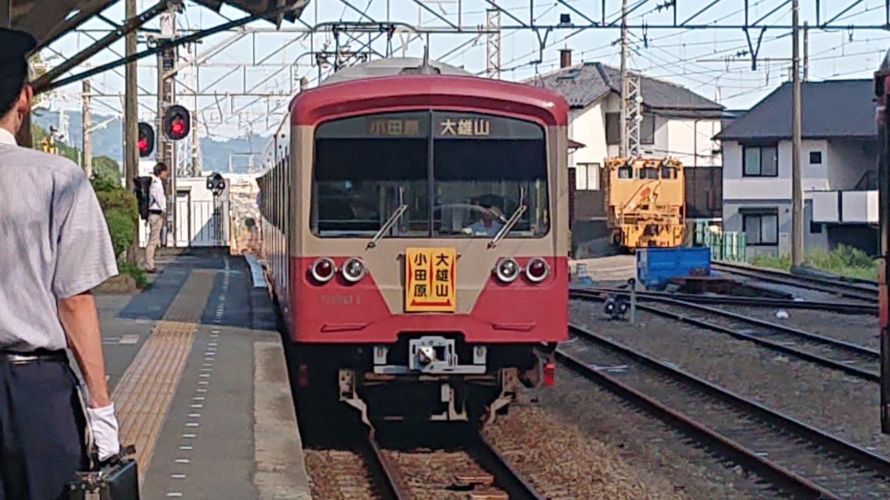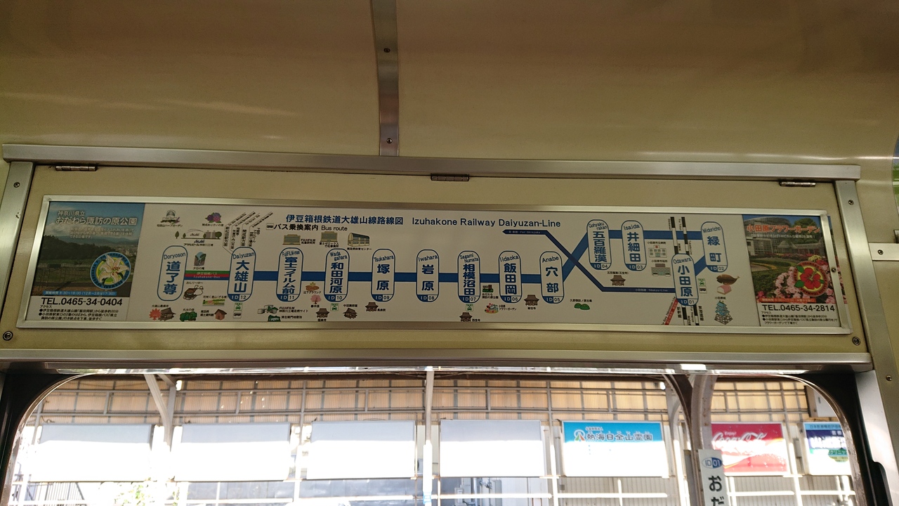 小田原から南足柄市の大雄山まで、9.6キロを21分で 結ぶ西武鉄道の子会社。会社名の通り、伊豆箱根鉄道は、三島~修善寺を結ぶ駿豆線とこの大雄山線を有していますが、両線はつながっておらず、車両の長さも異なるので、運用上の連携はありません。車両は西武線のお古ではありませんが、車内はなんとなく西武線のイメージ。車両はきれいです。早朝と深夜を除き12分間隔で運転されており、時刻表がなくても気軽に乗れます。全線単線で、小田原の次の緑町駅と井細田駅の間でJRと新幹線、五百羅漢駅と穴部駅間で小田急線の下を通ります。単線なので途中、五百羅漢、相模沼田、和田河原で上下列車の交換が行われます。小田原~大雄山まで10キロない区間に12の駅(始発終着駅含む)があるので、走るとすぐ停まる。また、結構カーブも多い。住宅地の中を走る(畑風景もありますが)ので、地方都市の郊外電車という印象。曹洞宗の寺院道了尊(最乗寺)は終点大雄山からバス10分くらい。PASMOやSuicaが使えます。